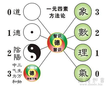 七千个汉字,就可以非常绰绰有余应付所有的知识,应付现代社会的一切方面。不像拼音字文化,需要学汉语里边的专业知识,大脑里边的知识不够用。学法律的,有法律方面的一套专用字典,那么厚;学医学的,又是一大堆书。汉字互相之间的连接性、独立性太强,互相之间的通用性又不是很强。汉字是全息的画卷,反应的是象、数、理、气,汉字中包含着“象、数、理、气”四元素的全息内涵。运用0和1就可能发明电脑,实际上运用老子的“三生万物”,就能发明生物电脑。三进位制、二进位制之间的辩证关系,在这个里边实际上都包含了。这在古代是运用一元四素的方法论,智识和慧识中间用这个德在中间来决择和控制,这样一来,就能够认识道、认识德,贯穿阴阳而知道三生万物,中气以为和。整个汉字所表达的,就是这么完整的六种信息:德、道、象、数、理、气。