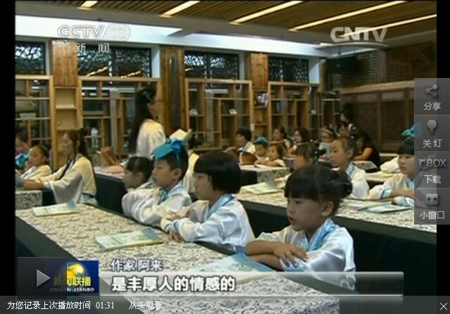 讲话引发了全国文学艺术工作者的强列共鸣。 新闻1分29秒到35秒之间,展示了浙江省玉环县楚门镇文玲书院阳光爱心公益国学班的公益经典诵读课堂学习场景。画面中,来自德慧智教育文化基金的国学公益志愿者,正在对孩子们进行国学公益经典诵读教学。 据了解,文玲书院阳光爱心公益国学班是楚门镇组织的一项社会公益项目,邀请了专门的国学老师,免费开展国学教学,让儿童从小在传统文化中吸取营养,养成良好行为习惯。 ![]() 1分29秒---1分35秒播放,画面中,孩子们正在学习《德慧智经典诵读教材》