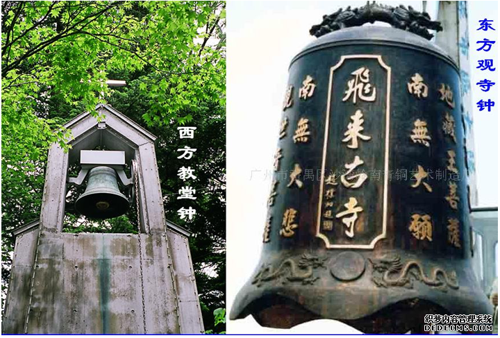 我们可以看到东方宗教文化里面,写到中国的寺庙常用一个词,——晨钟暮鼓。早晨一定要敲钟,把我们整个的生命之水振荡起来,让它活起来,这里面运用了传统文化的“音”。中国文化深知“音”的作用,因此在钟的设计上,敲击外壁,使“音”免受“声”的混杂和干扰。这也显示出了东西方文化的差异与不同。